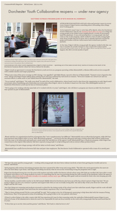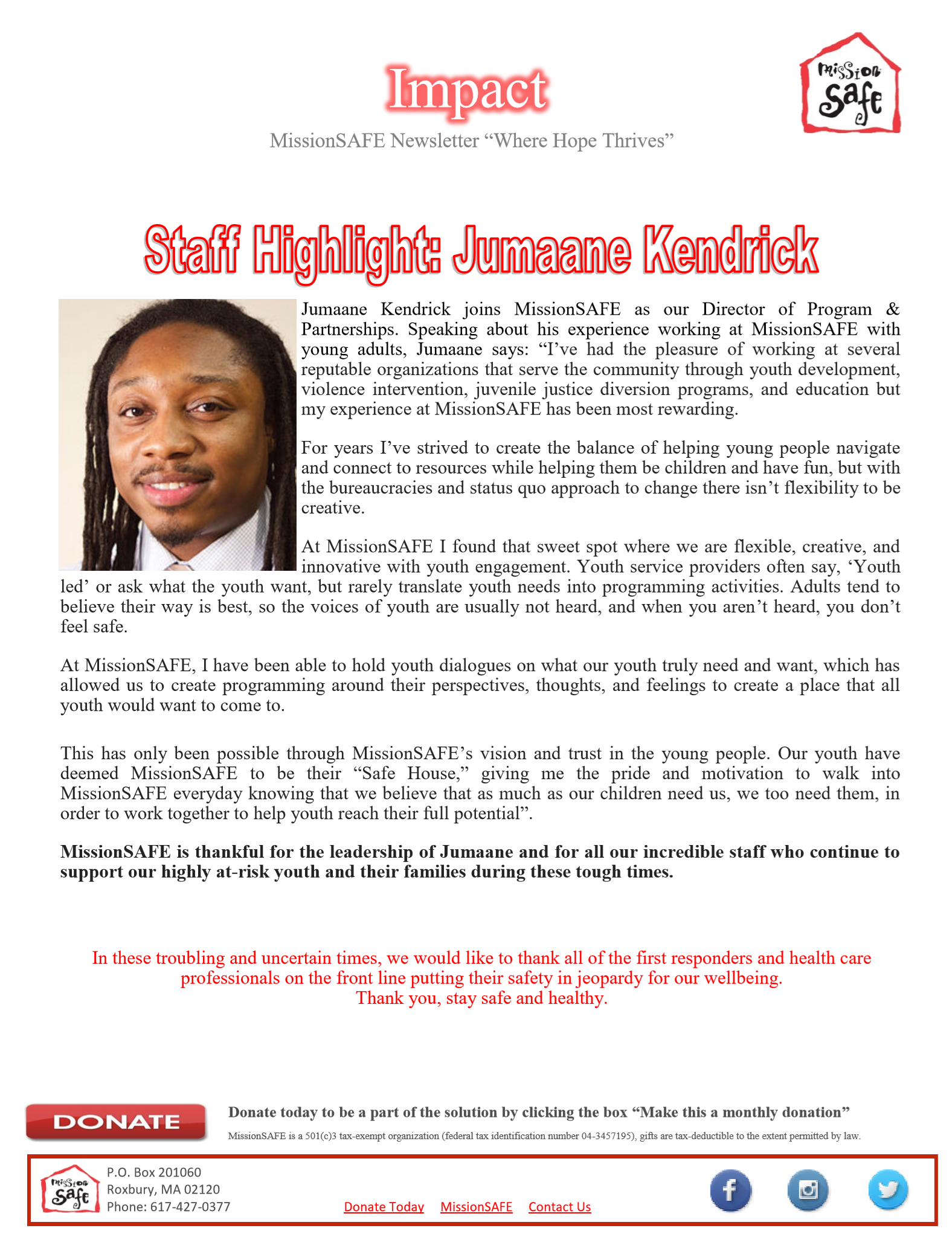 NBC10’s Eli Rosenberg (@ELINBCBOSTON) highlighted MissionSAFE’s work to reduce youth violence in a July interview with Jumaane Kendrick, MissionSAFE’s Director of Program & Partnerships. Jumaane also explained MissionSAFE’s approach to reducing violence and youth trauma in a May segment of Greater Boston, with guest host Sue O’Connell (@SueNBCBoston).